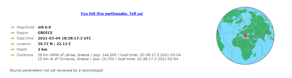 Një tërmet i fuqishëm ka goditur Greqinë para 5 minutash ku ka arritur në 6 shkallë të rihterit.