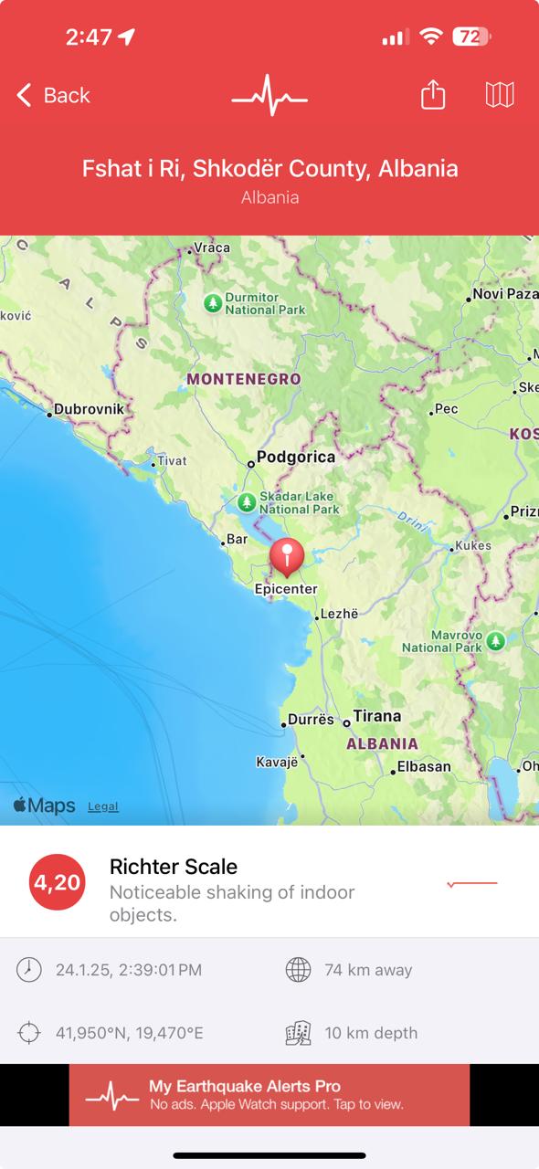 Tërmet në Shkodër, lëkundjet ndihen deri në Mal të Zi
