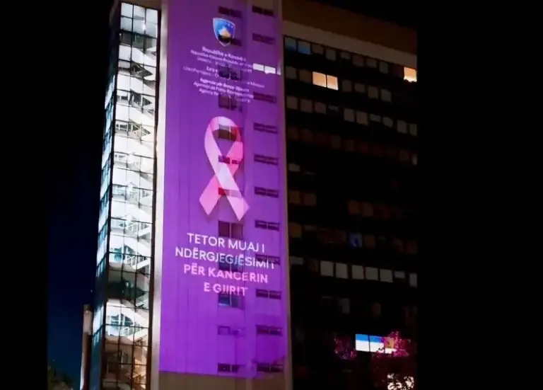 Ndërtesa e Qeverisë së Kosovës është ndriçuar sot për tetorin rozë.