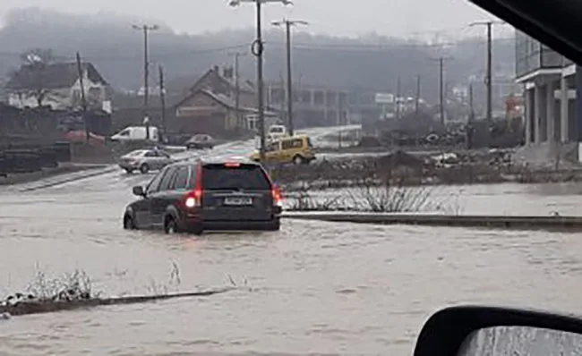 Nga disa pamje nga Mirusha e Malishevës shihet se si uji ka bllokuar rrugët duke vështirësuar qarkullimin e njerëzve dhe veturave.