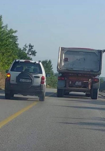Kjo veturë shihet duke tejkaluar një kamion në vijë të plotë, ku sipas rregullave të trafikut një gjë e tillë është e ndaluar.