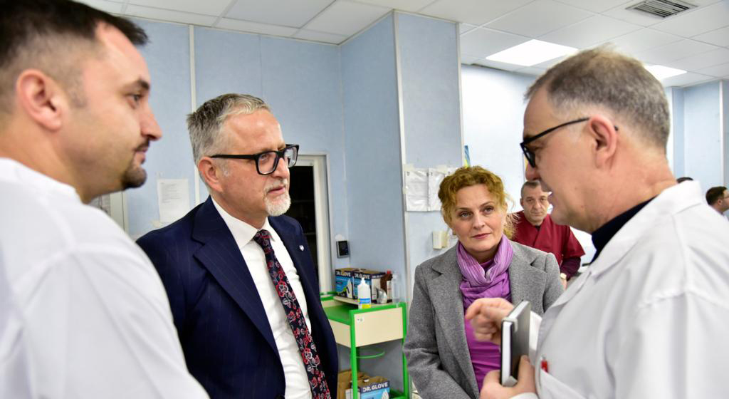 Gjatë kësaj vizite, Ministri vizitoj edhe Shërbimin e Kardiologjisë Invazive dhe Njësinë Intensivë të kësaj klinike, ku gjatë bashkëbisedimit me udhëheqësit dhe stafin mjekësorë të klinikës, drejtori i klinikës së Kardiologjisë, Dr. Lulzim Kamberi e ka informuar Ministrin se kjo klinikë është ndër të parat që ka Rregulloren e brendshme të punës, e cila ka lehtësuar trajtimin e pacientëve në këtë klinikë.
