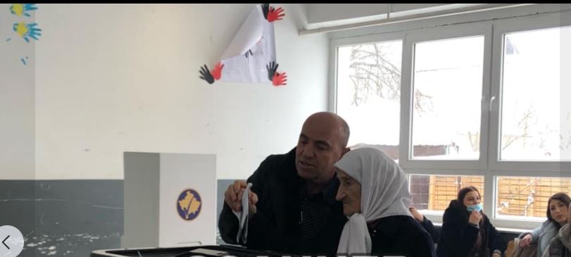 Ajo ishte shoqëruar nga një familjar i cili e ndihmonte gjatë procesit të votimit.